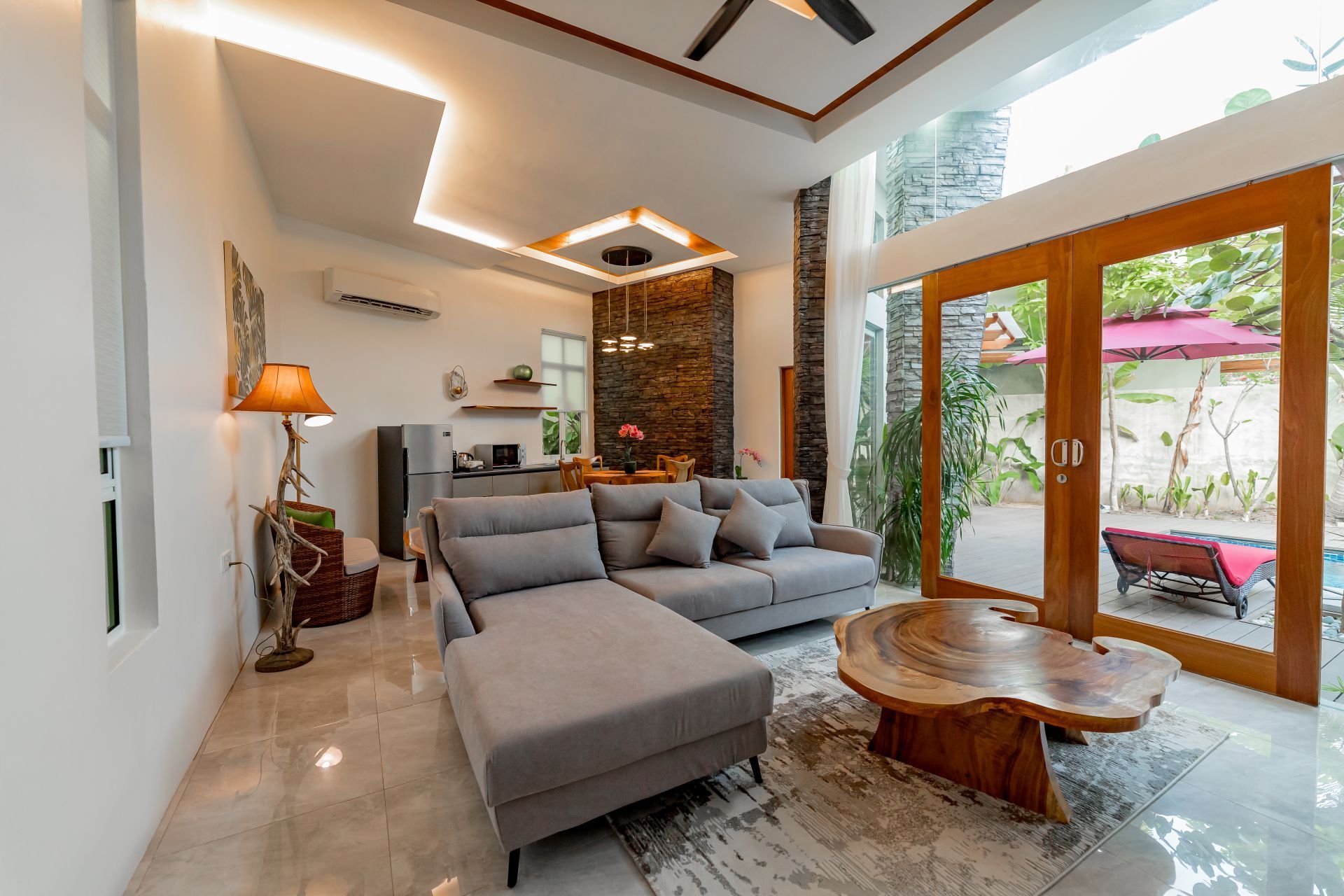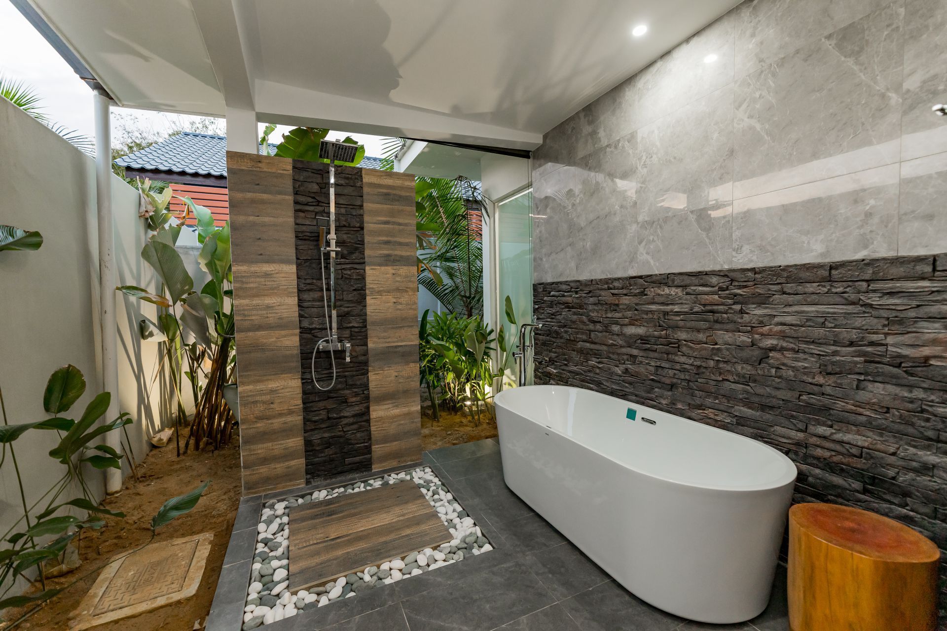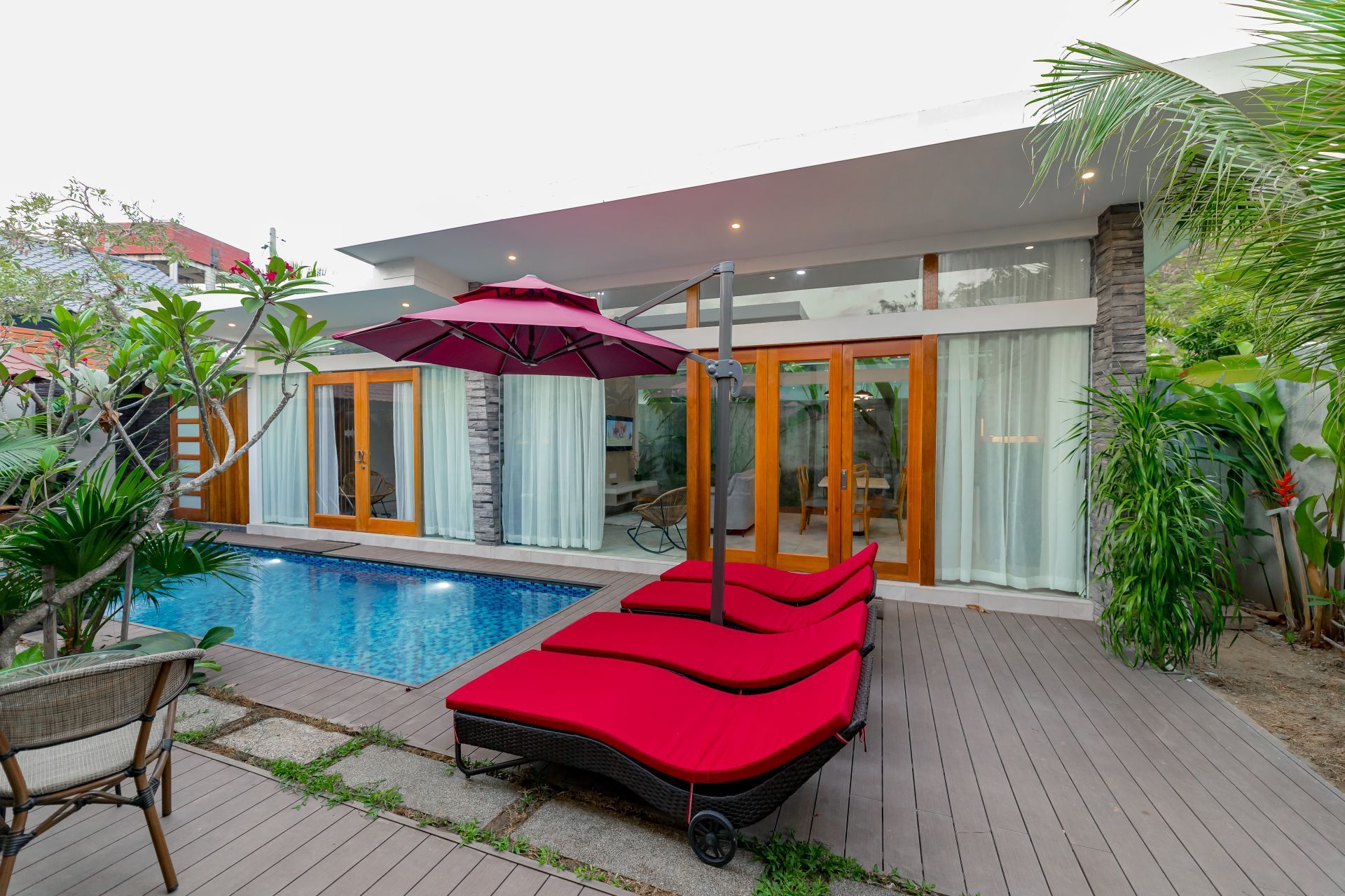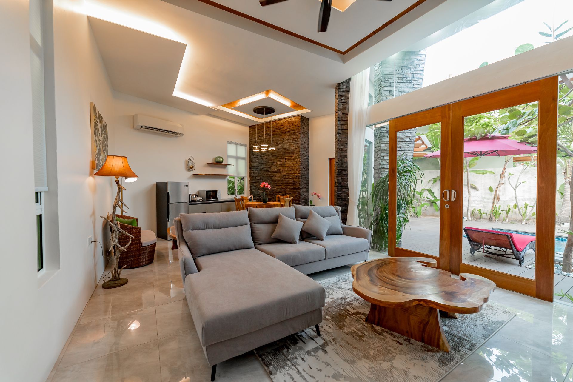 Our Exclusive Villas are fully furnished 3-bedroom villas with a private pool, complete with a spacious living room, dining room, and kitchenette. They are the perfect getaway for families seeking a luxurious and unforgettable experience. With the capacity to accommodate up to 9 guests, you can bring the whole family together for an indulgent stay in paradise. Each of the three bedrooms comes with its own en-suite bathroom featuring an outdoor bathtub and rain shower. Enjoy the lush tropical garden view from the outdoor gazebo and experience ultimate relaxation and privacy.