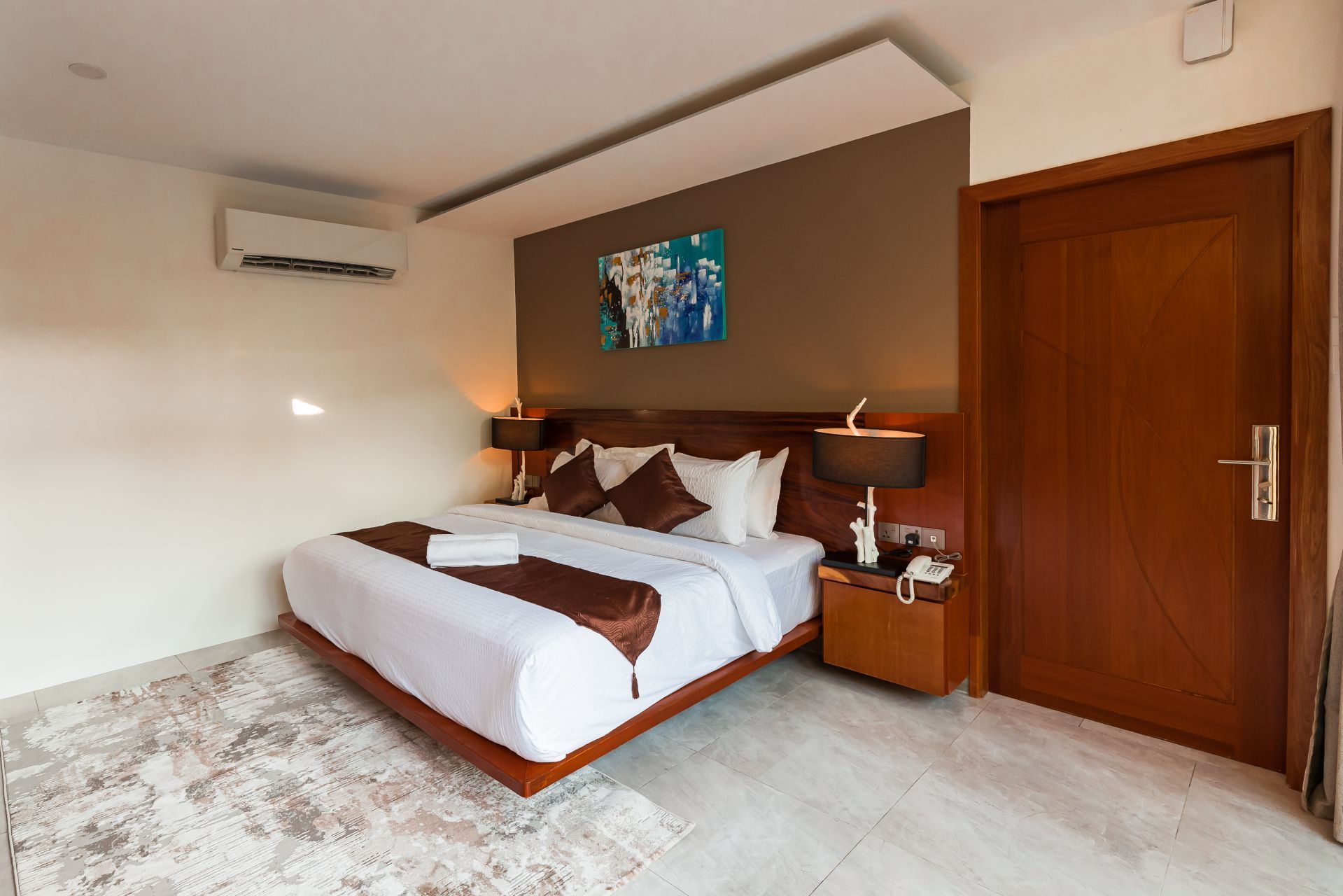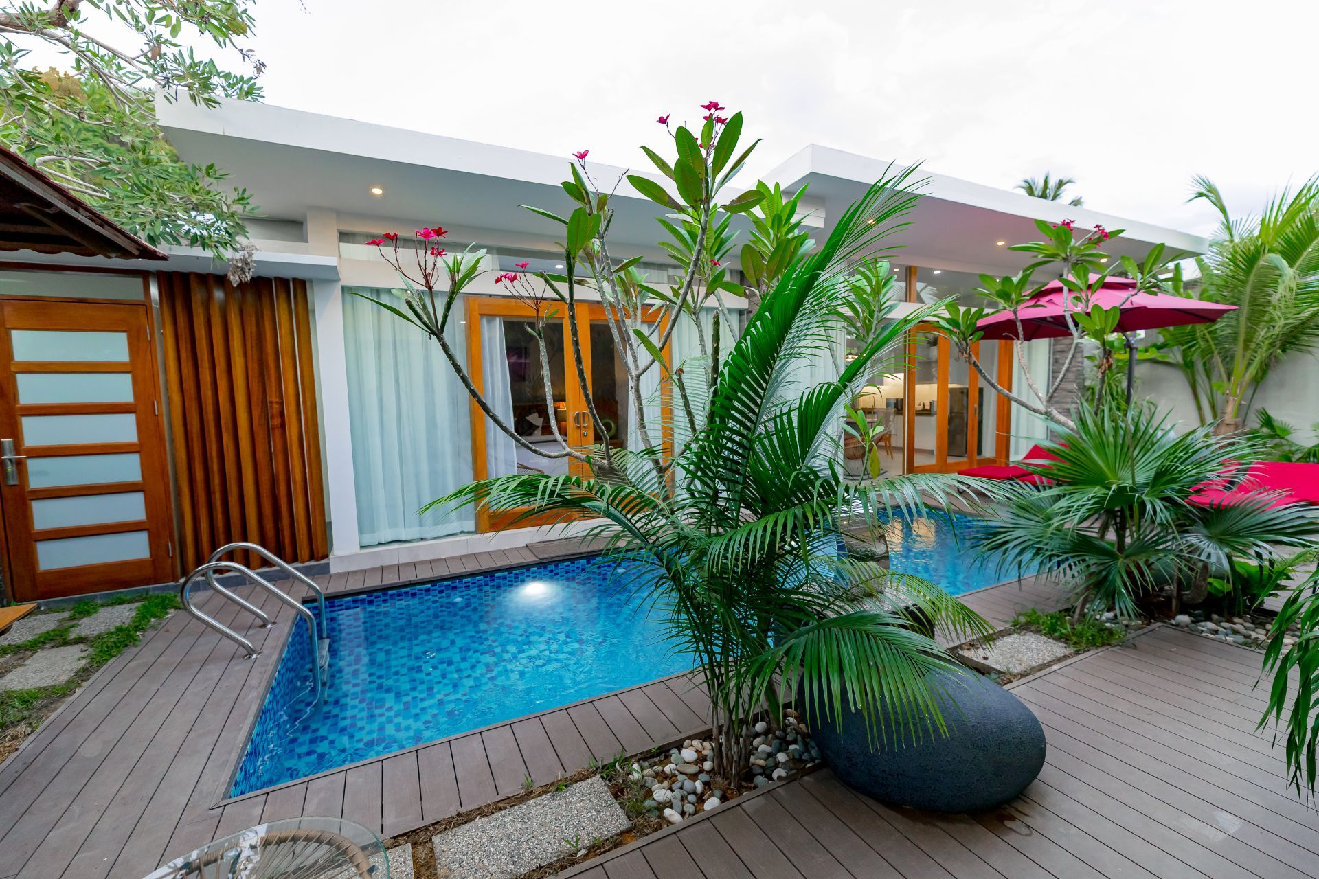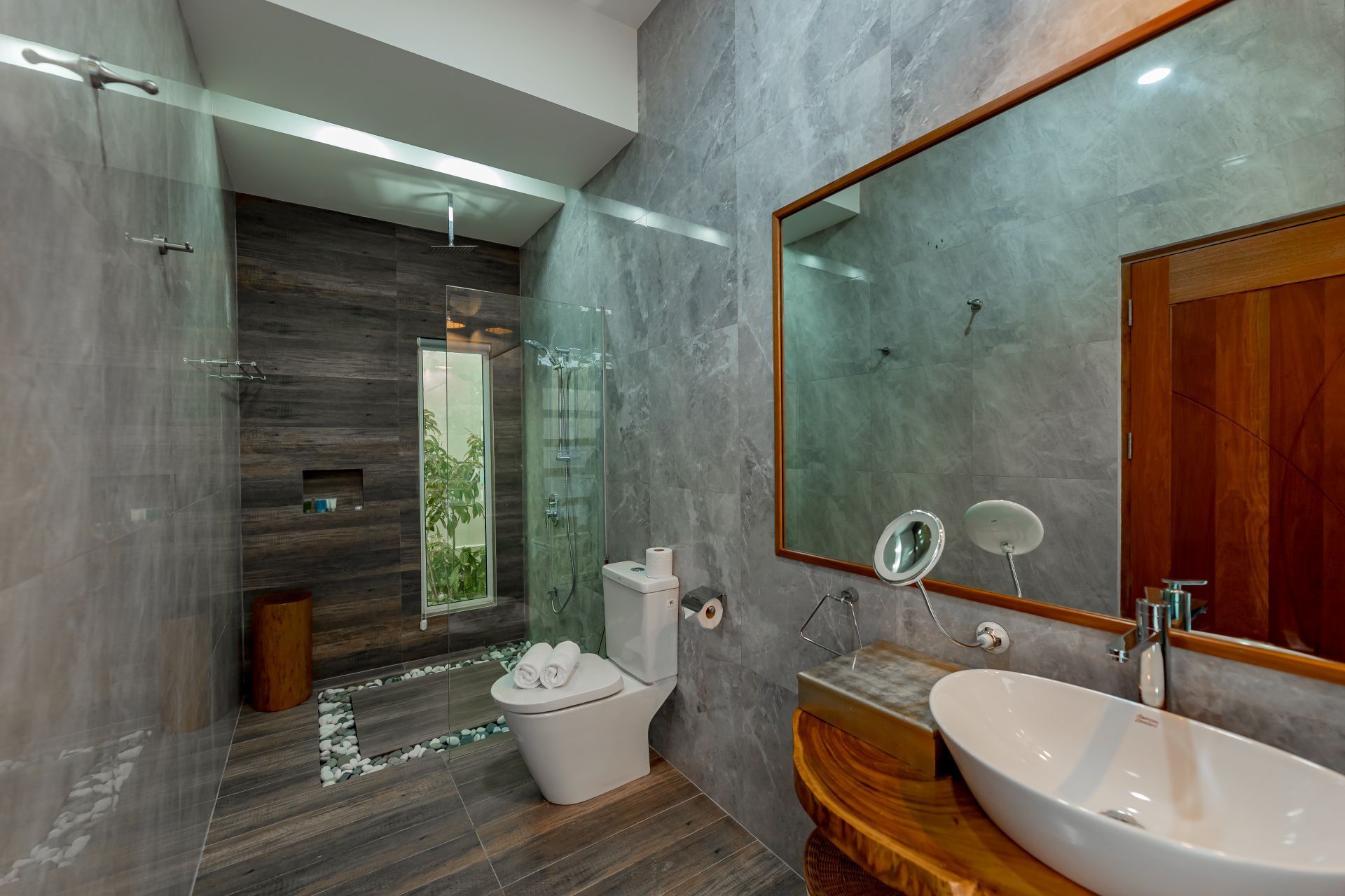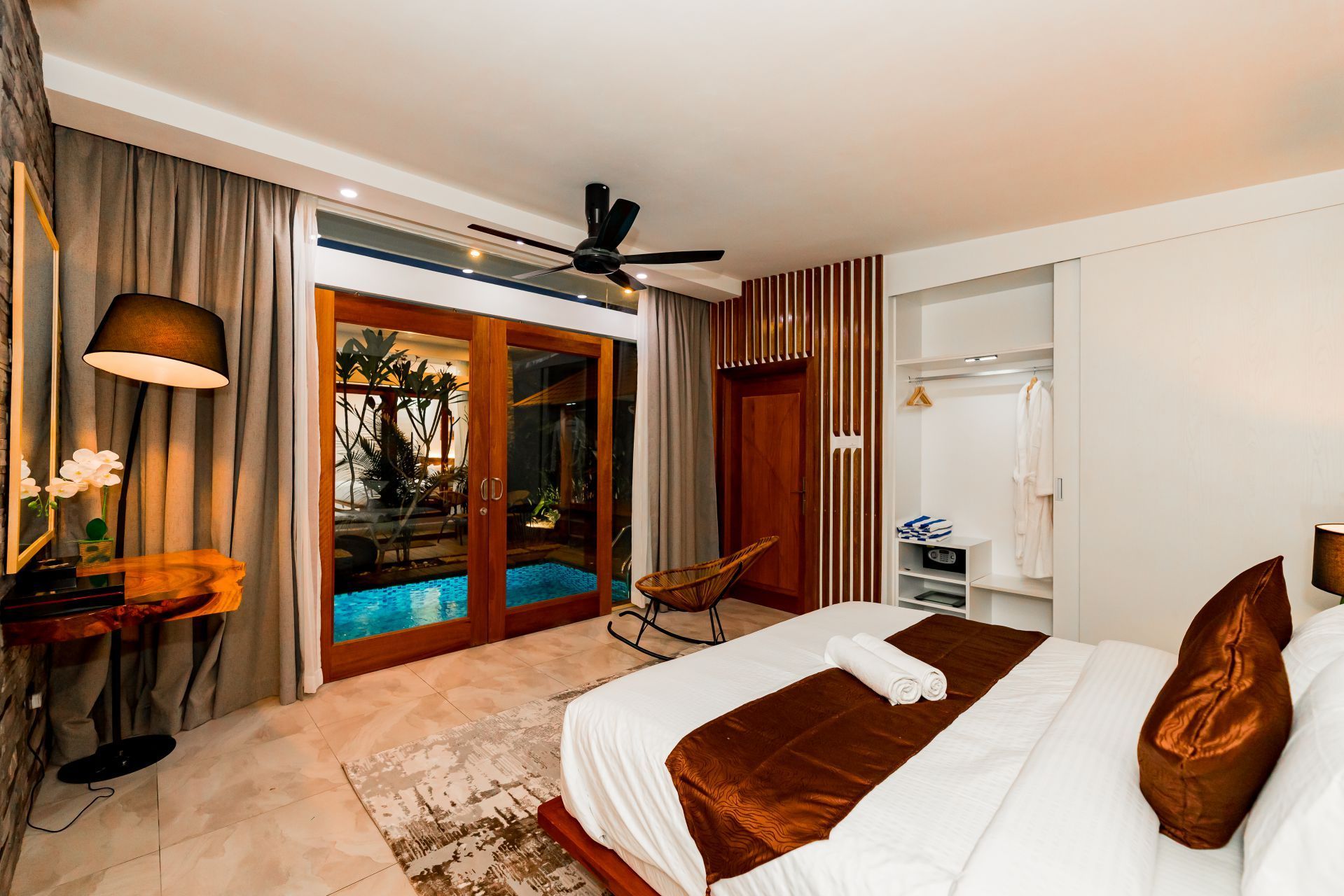 Our Exclusive Villas are fully furnished 3-bedroom villas with a private pool, complete with a spacious living room, dining room, and kitchenette. They are the perfect getaway for families seeking a luxurious and unforgettable experience. With the capacity to accommodate up to 9 guests, you can bring the whole family together for an indulgent stay in paradise. Each of the three bedrooms comes with its own en-suite bathroom featuring an outdoor bathtub and rain shower. Enjoy the lush tropical garden view from the outdoor gazebo and experience ultimate relaxation and privacy.