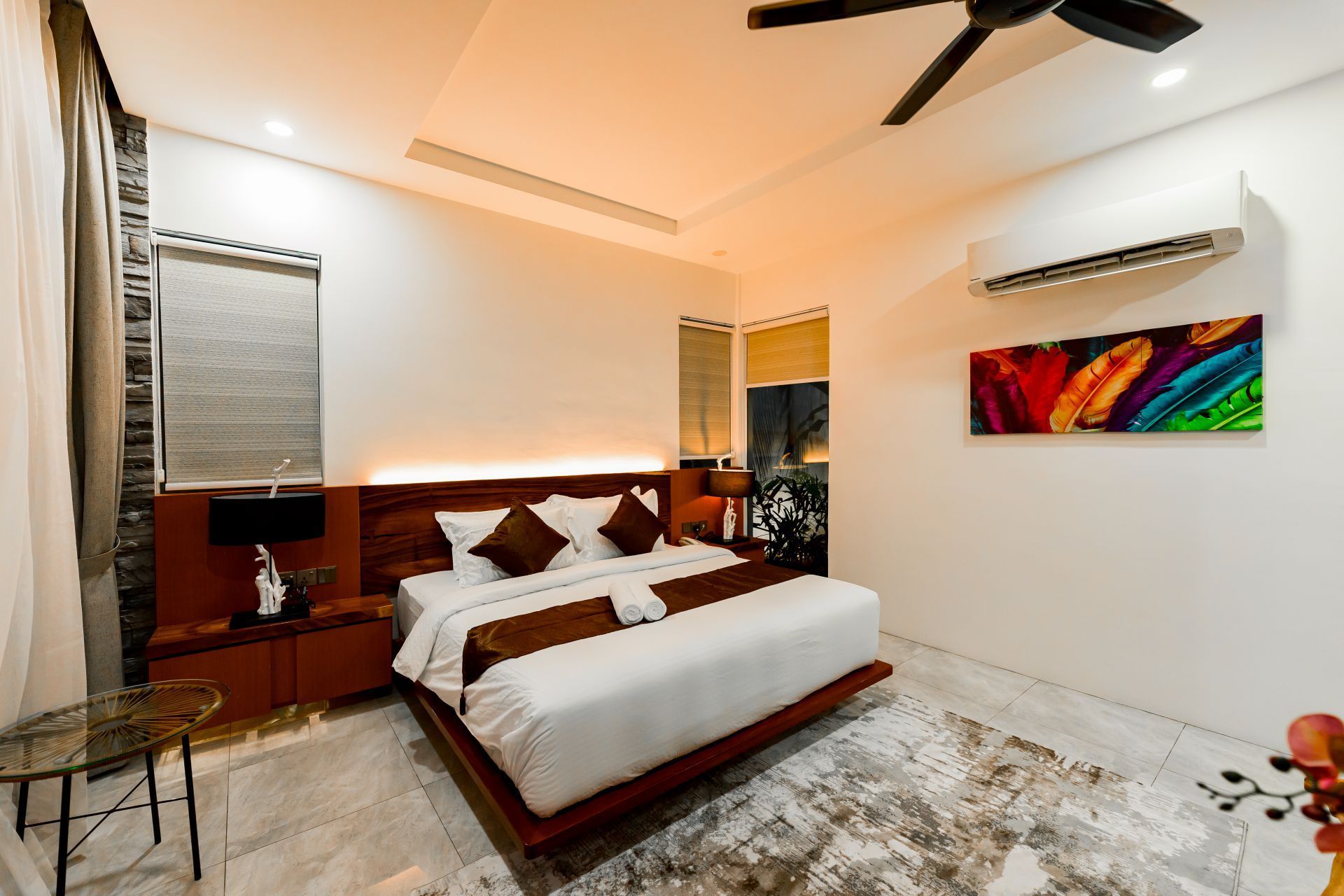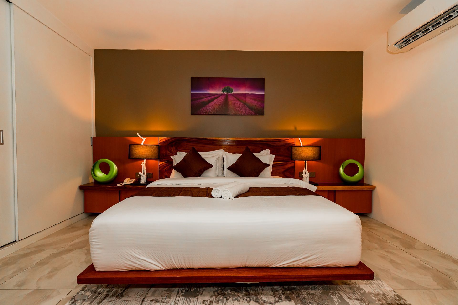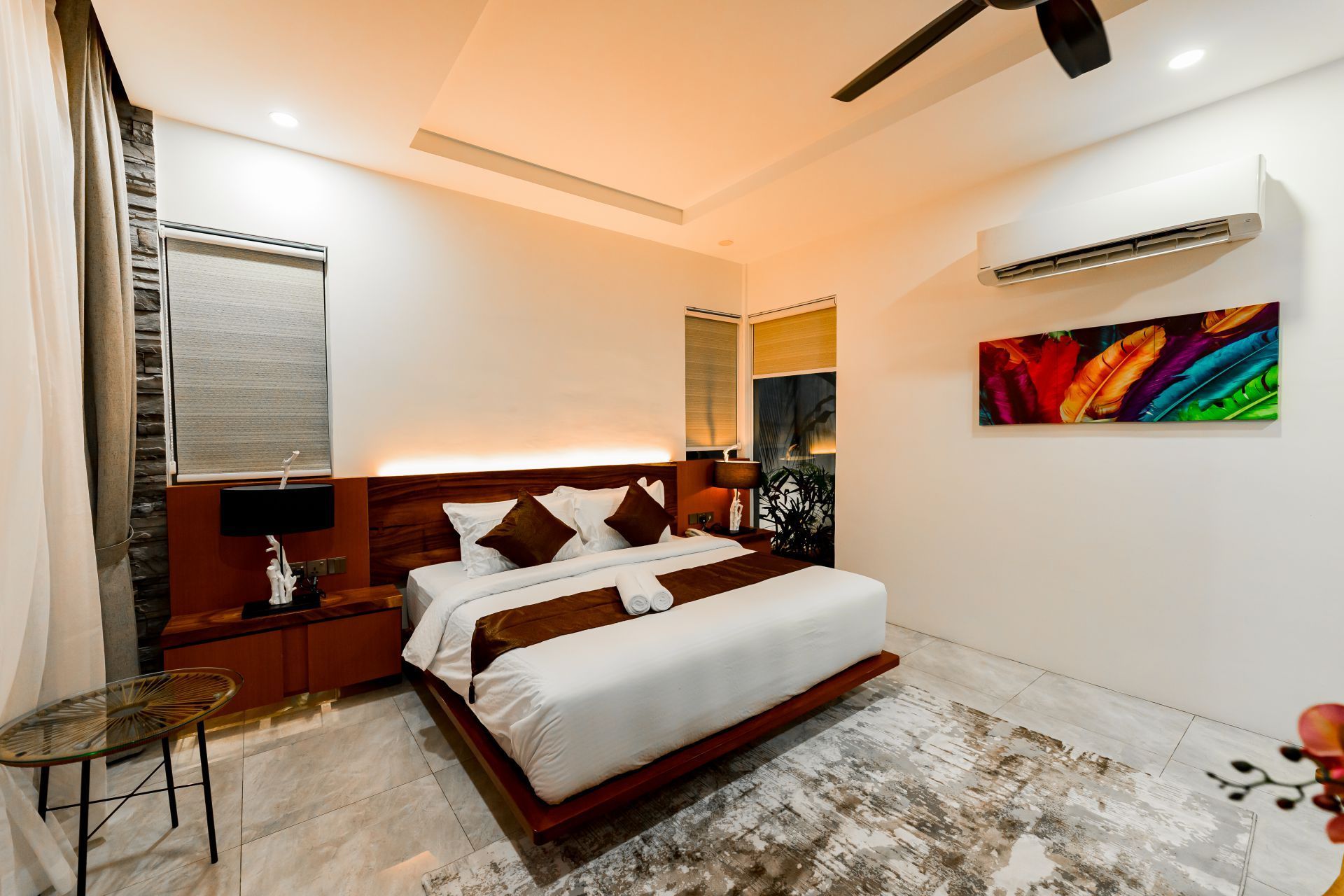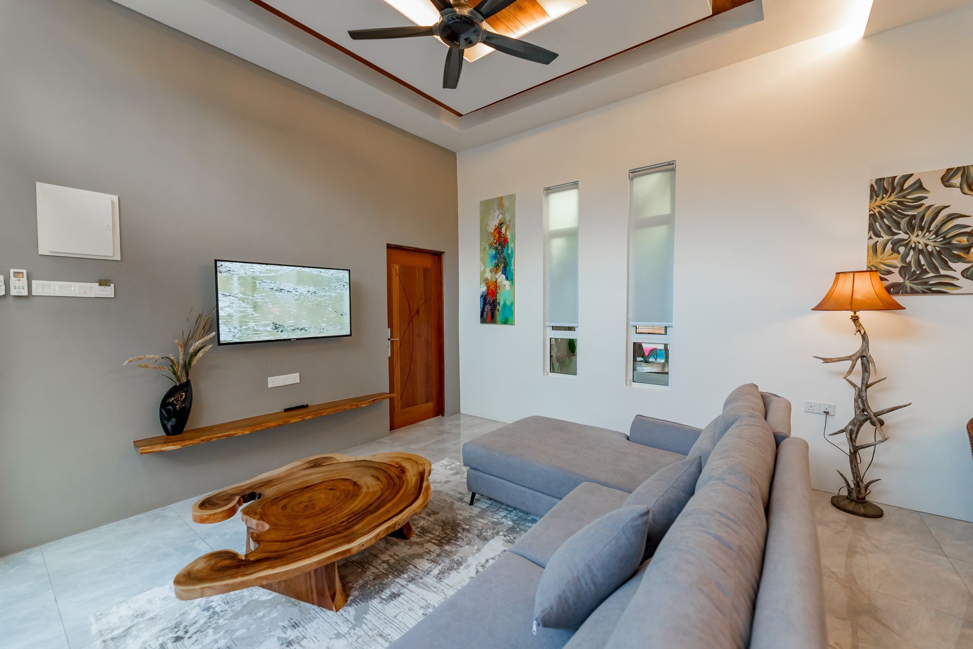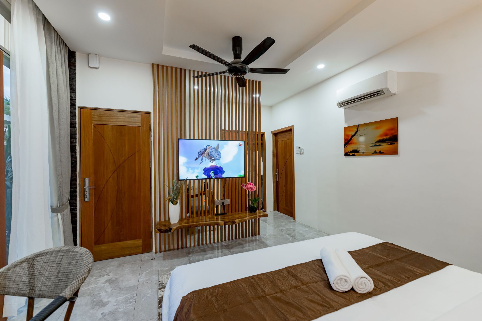 Our Deluxe Villa – 1 Bedroom Pool Villa offers the perfect blend of luxury and comfort for couples or small families. Our villa offers a private pool surrounded by comfortable sun loungers, chairs, and tables, allowing you to relax, sunbathe, and enjoy a refreshing dip in the pool. The fully furnished living room, dining room, and kitchenette ensure you have everything you need for a luxurious and comfortable stay.